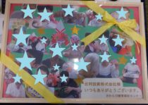 新社屋ゲートに園児たちの絵を掲載