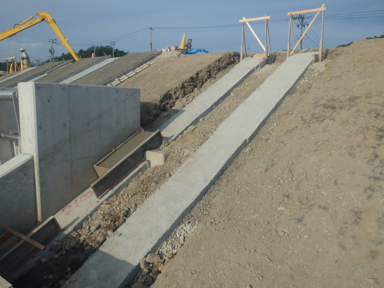 プレキャストのブロックを並べる為の丁張りを設置しました。