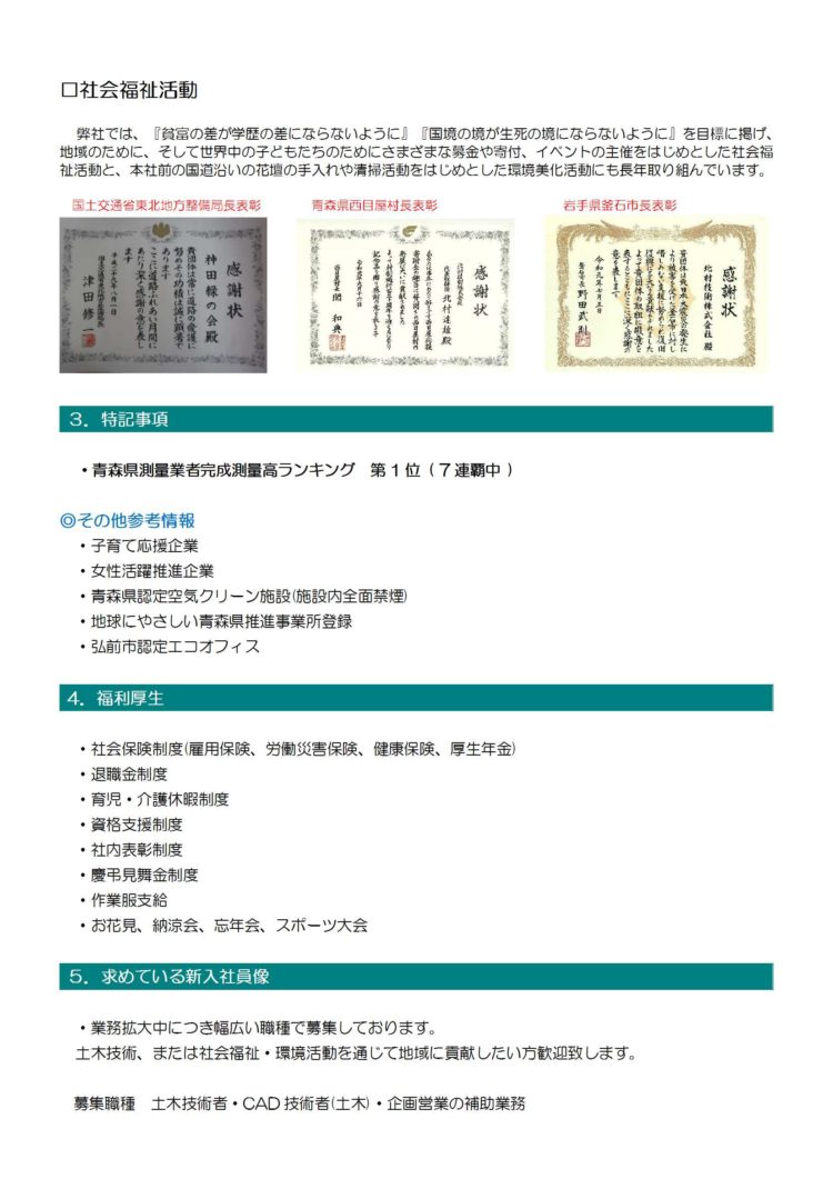 土木技術、また社会福祉・環境活動を通じて地域に貢献したい方からのご応募をお待ちしております。