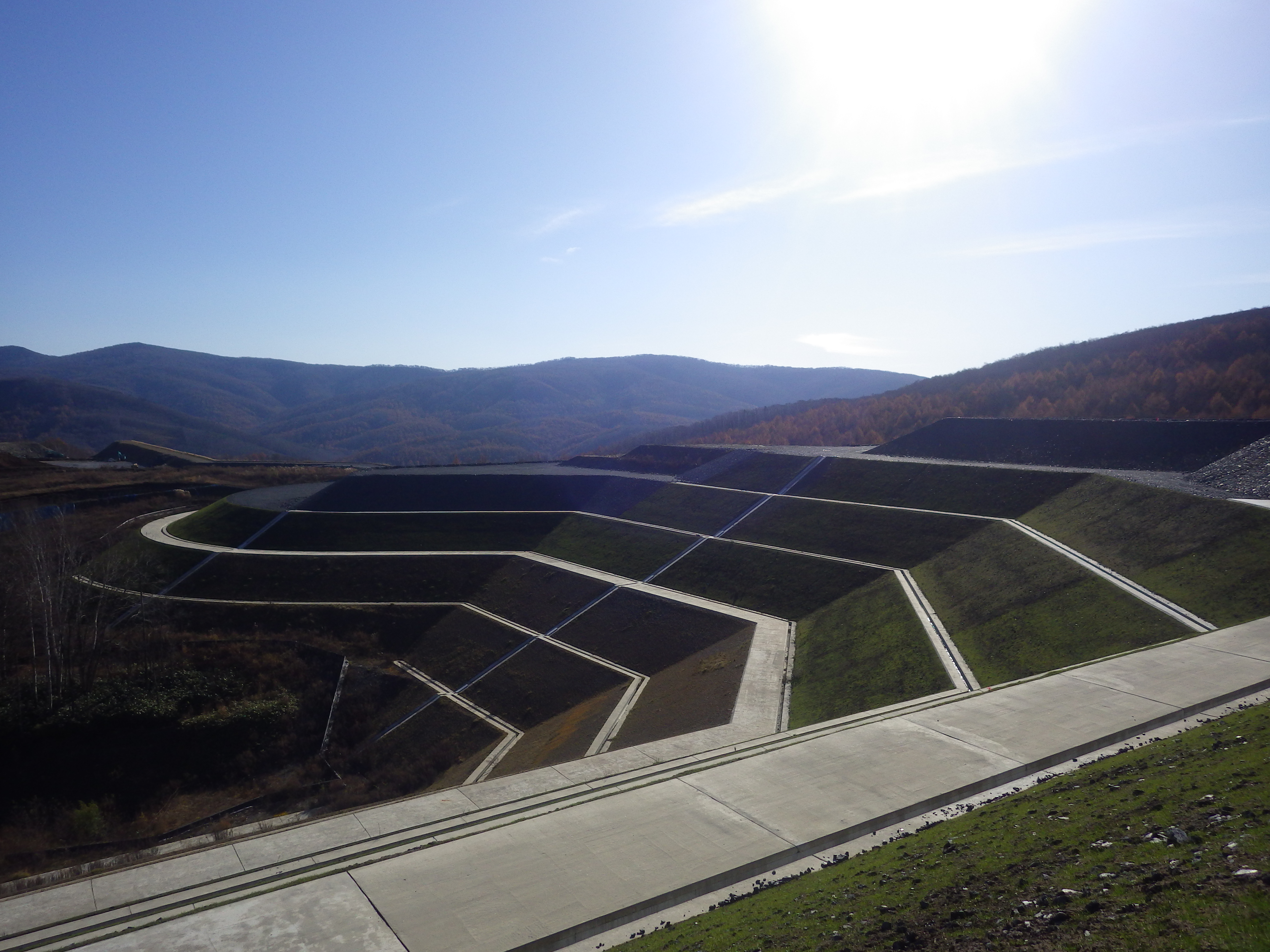 こちらはトンネルずりの土捨て場ですが、法面の角度と曲線がきれいで時々見にきています。
