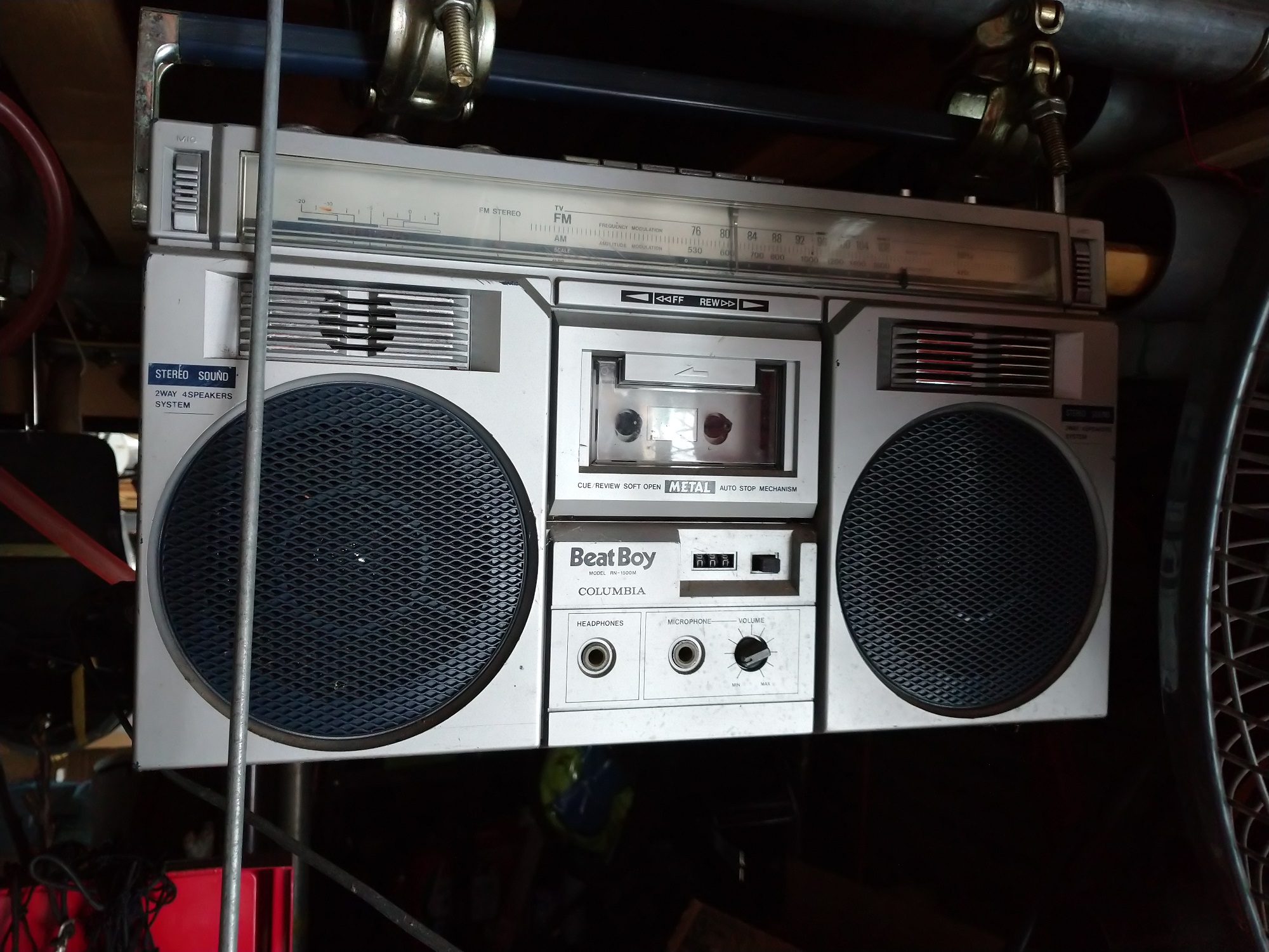 我が家のガレージで現役で活躍中です。 普段使いは赤いほうですが、充電器を使うとノイズが入るために、その時は銀色を使用 です。 専らラジオですが、赤いのにはカセットが入っていて、「素敵な日々」ジガーズサンが入ってます。(当時のまま) Its-show