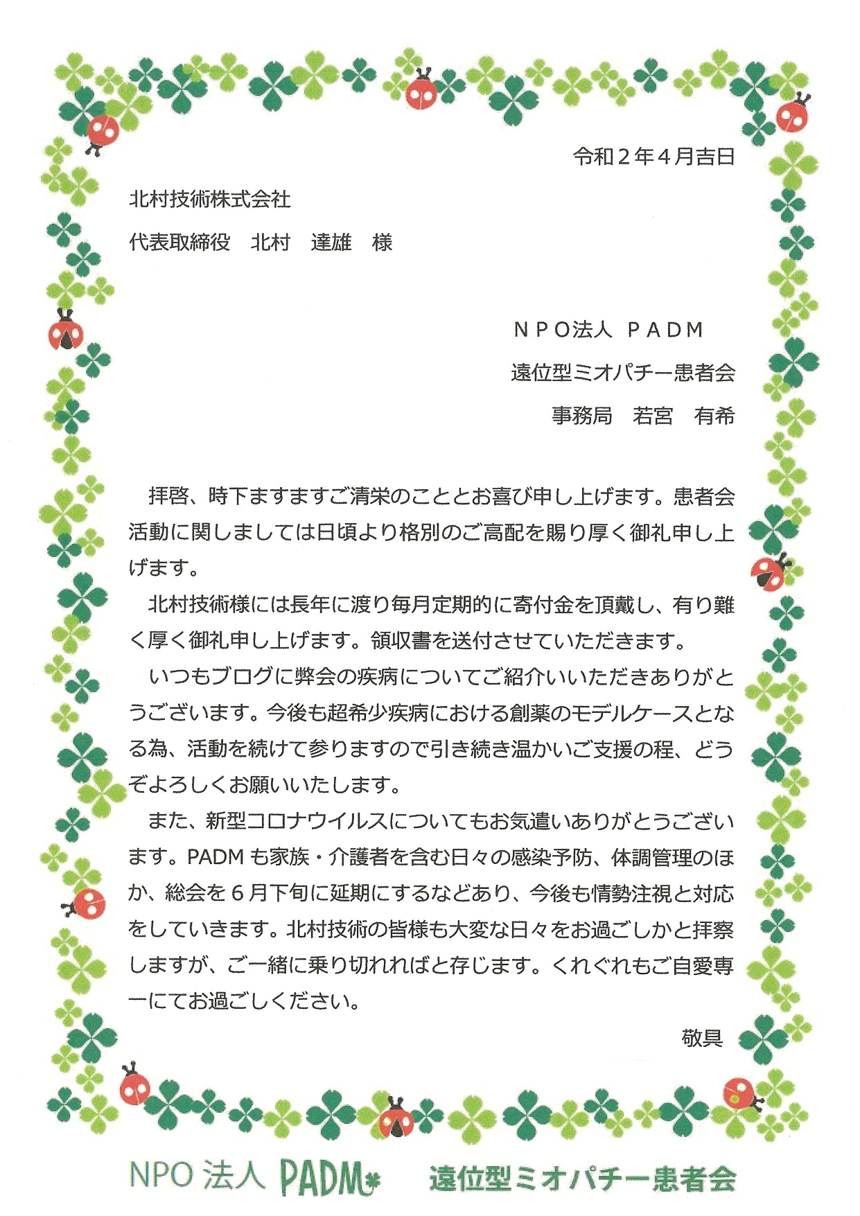患者会の皆様もこのコロナウイルスにより