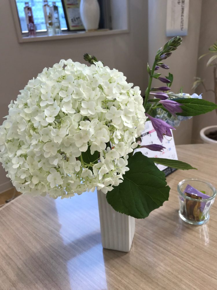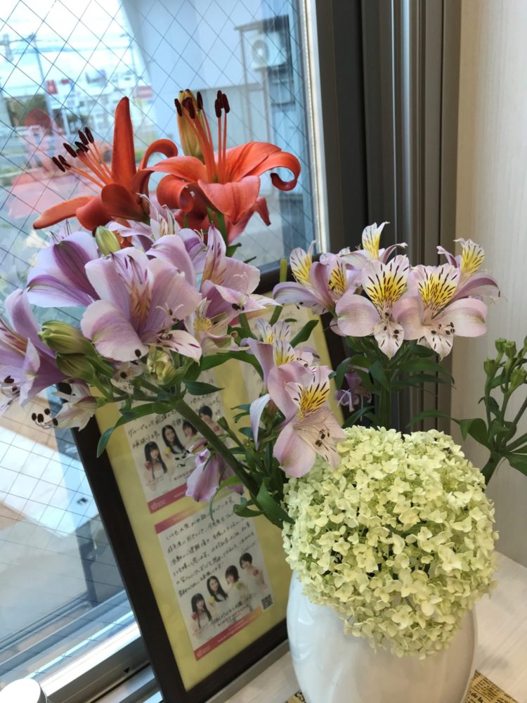 北村技術にお立ち寄りの際は、玄関やエントランスのお花でちょっとした癒しを
