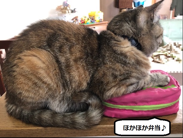 最近は、朝に作る出来立てのお弁当の上で暖をとるのが好きらしく、温かい場所を見つけることに長けてるなーと感心しています😊