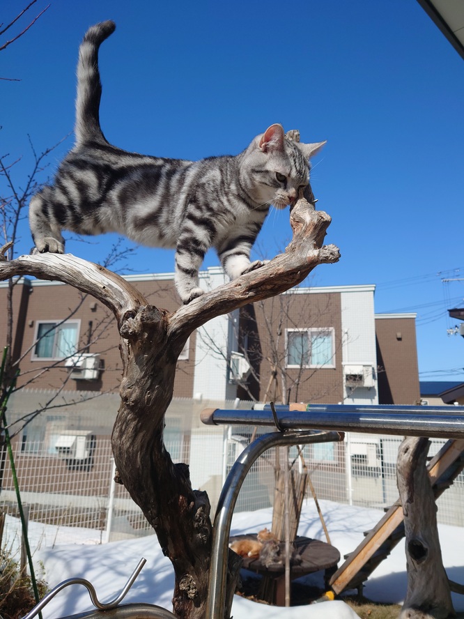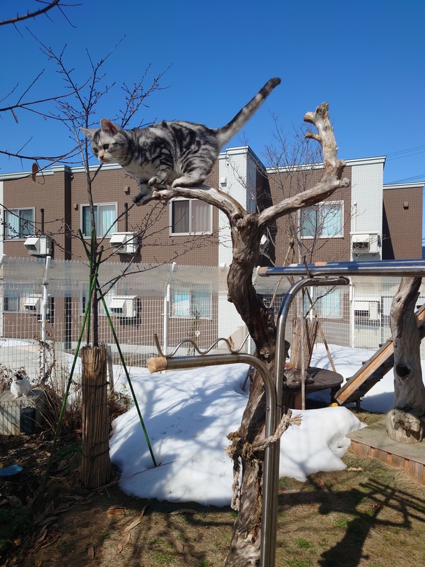 、木登りし 寒さ知らず、さくらのつぼみ 小さくて 春風寒さと入交り 春を願いし ねこ走り 早春のひととき 青空の元。。。(=^・^=)
