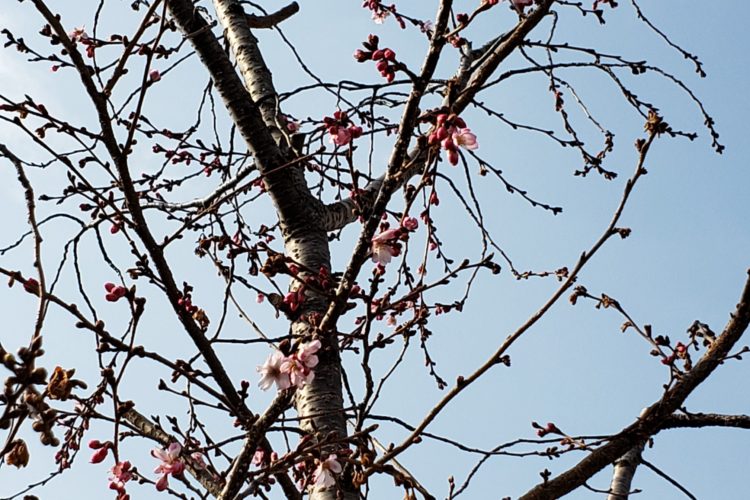 本社でも毎年一足早く咲く、ジュウガツザクラが開花しましたので