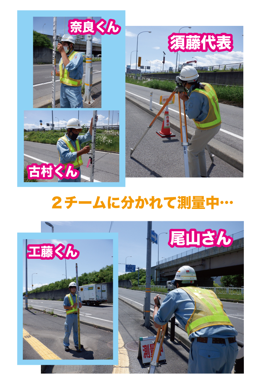 毎日外で測量を行っているので、日焼けがマスクの痕になっています😎