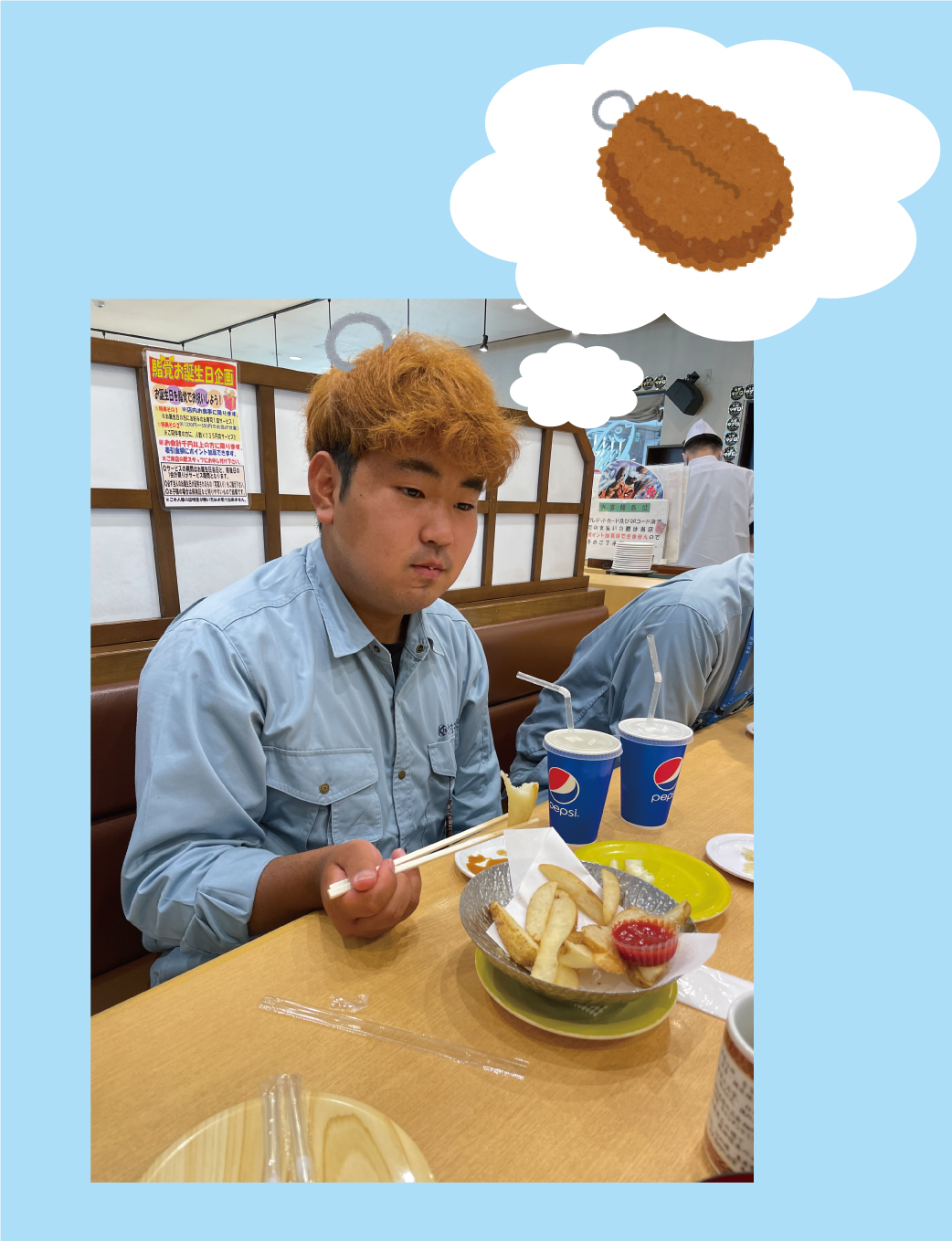 そしてフライドポテトと飲み物がとても似合いますね🍟