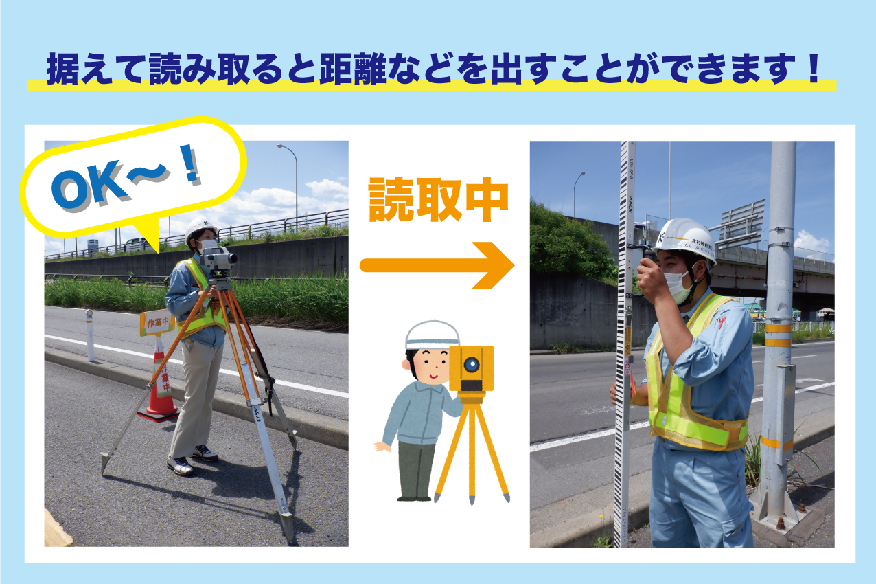 こちらの測量機器は据えて読み取ると数値が出てきます。