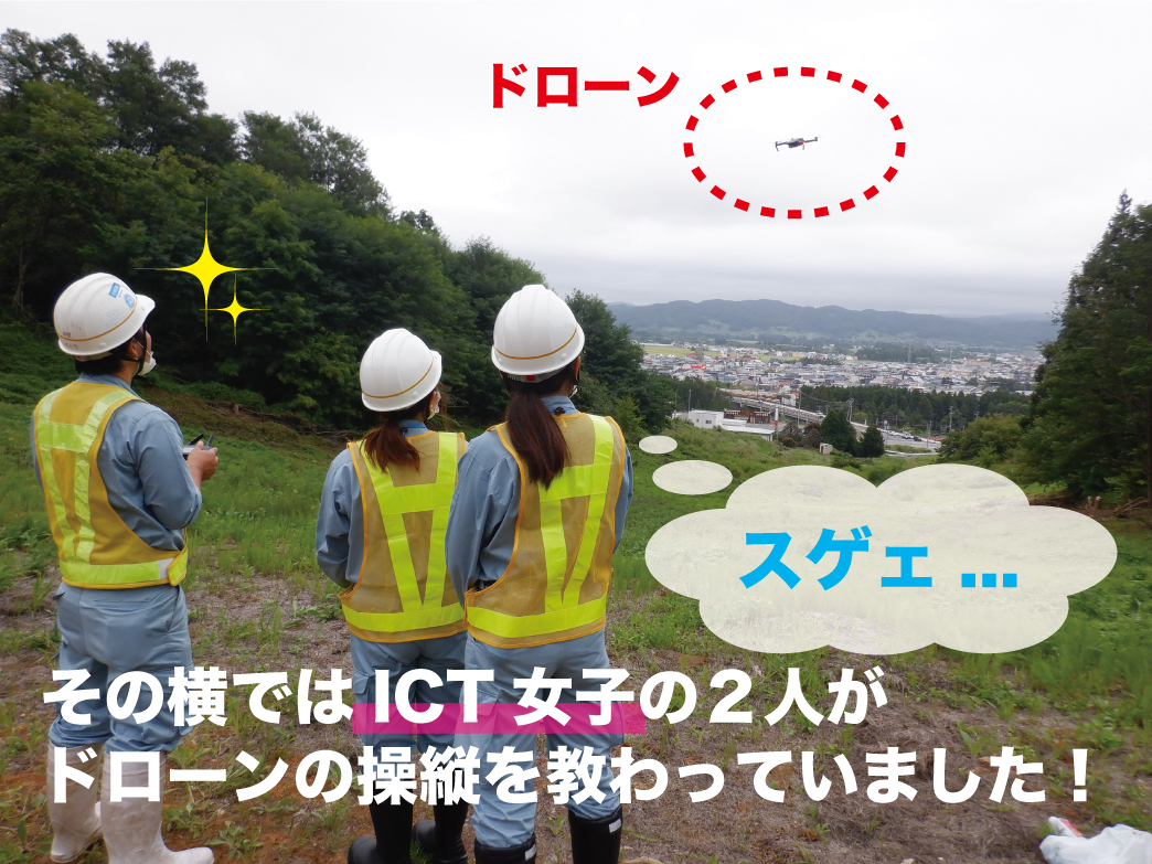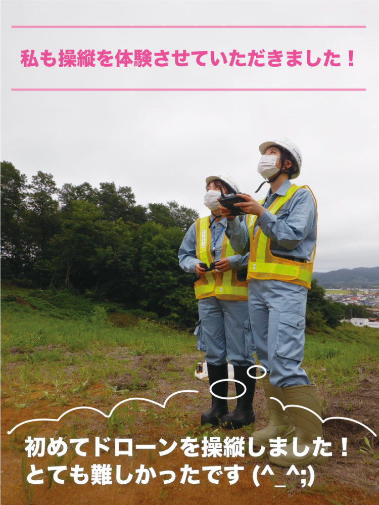 その横では新入社員女子2人がドローンの研修を行っていました!