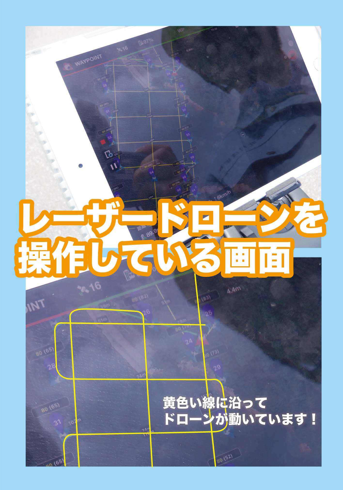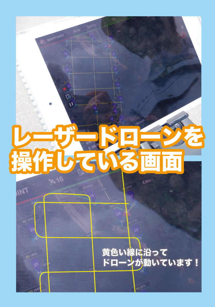 このレーザードローンはiPadにデータが入っていて走行経路に沿って動いているそうです✨