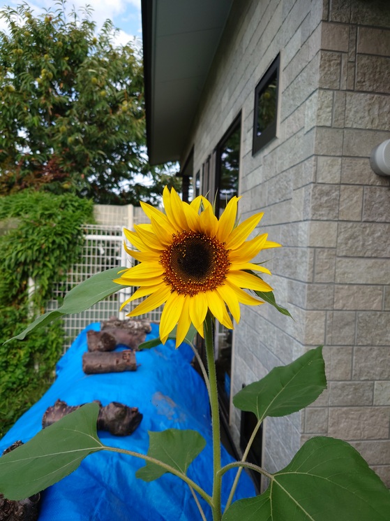 我が家のデッキの前のマキ置き場からヒマワリがにょろにょろと生え咲きました🌻ヒマワリ9月ですがとてもきれいに咲いてます。🌻