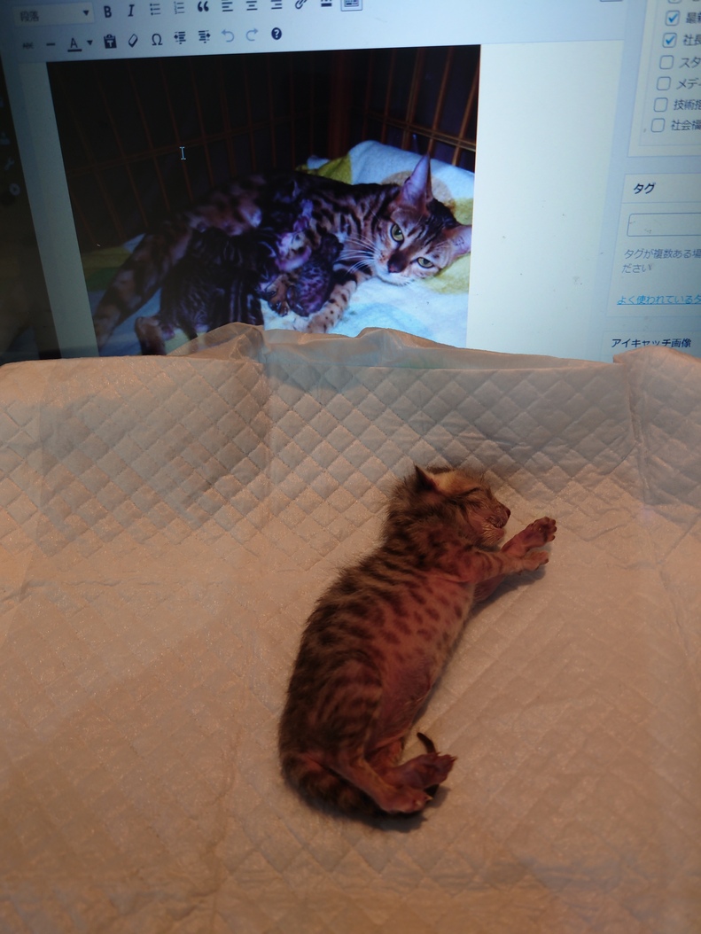 我が家のベンガルさくらの赤ちゃんが1匹無くなりました母ネコが手を掛けません、弱い猫をはじく習性とのこと、病院へ連れて行くも午前11時4日間の命( ノД`)シクシク…『5日間の命、ありがとう』午後4時我が家のお墓に『さようなら』