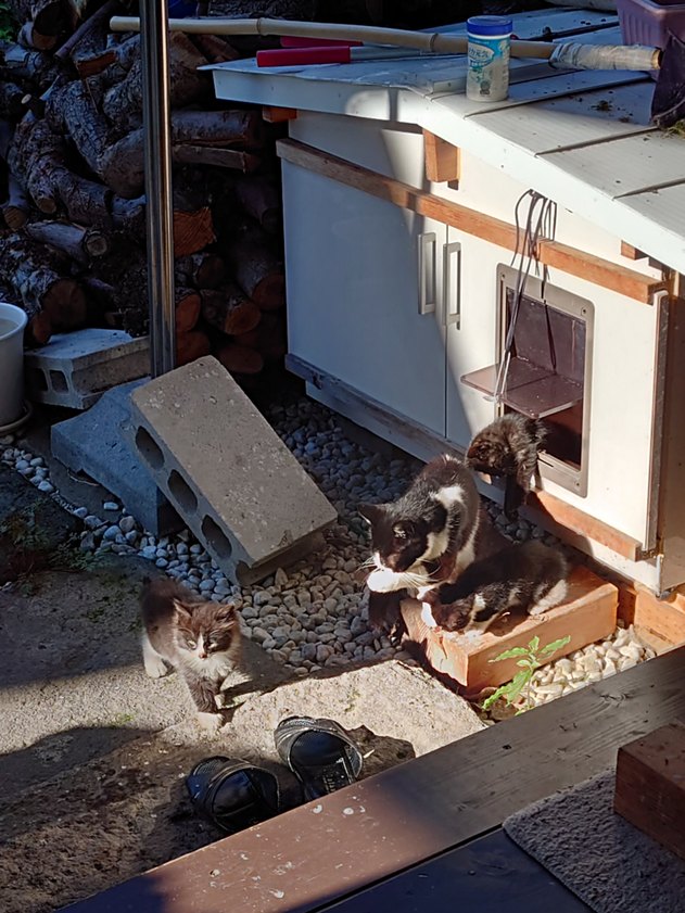 我が家にまた新たな親子野良(=^・^=)たちを紹介します。夏から秋そして冬へ、我が家のネコハウスへようこそ(=^・・^=)この子猫(=^・^=)たちも強くたくましく自然の中で、、、ここで一句。このネコに 生きる勇気を 教えられ