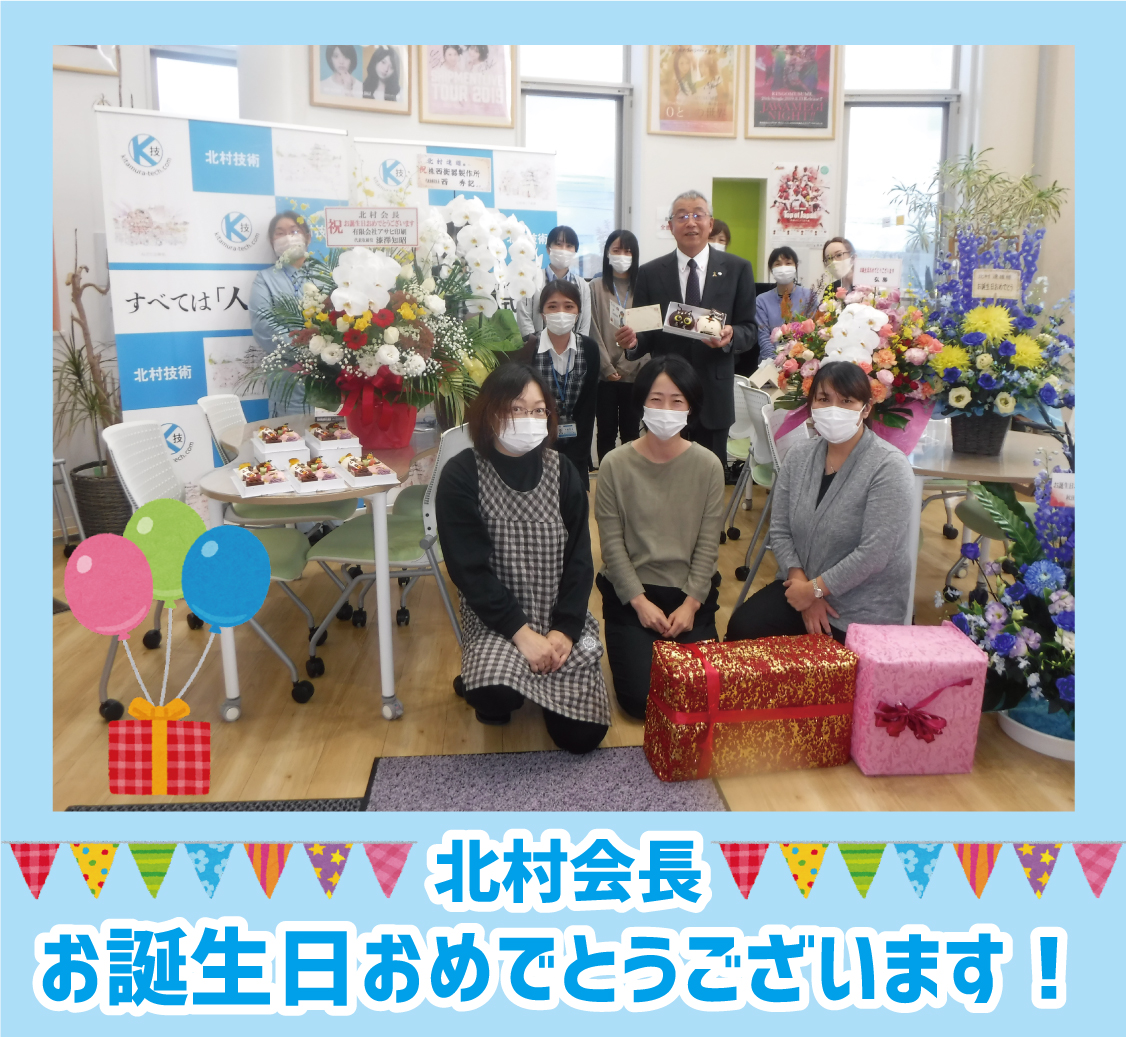 本社では直接北村会長のお誕生日を前日ですが(当日は土曜日のため)お祝いさせていただきました(^^♪