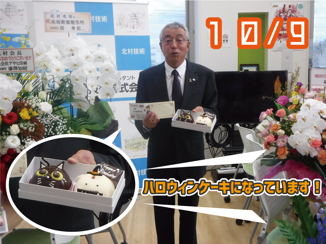 なんで?なんで?と思う方がいるかもしれませんが次の日の10月9日は北村技術創業者・北村会長のお誕生日でした~~🎉