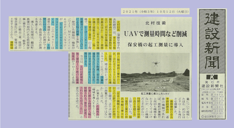 「測量時間やコスト削減、安全性の確保などにつながるほか、担い手不足の対応にも大いに期待できる」と記事に記載されています!