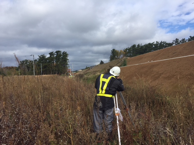 東北各地で土木現場において測量・調査・施工管理・UAV(ドローン)1台・3Dレーザースキャナー2台・TS自動追尾4機・GNSS(GPS)12基・・・測量部隊30人体制で東北各地の土木現場で活躍しています。