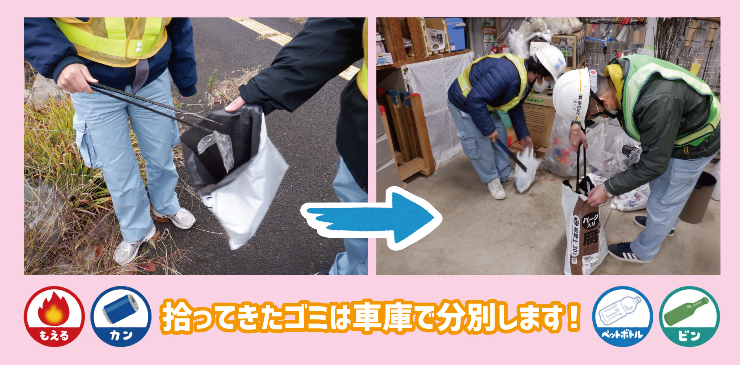 外で拾ってきたゴミは会社の車庫でしっかり分別しています🧴