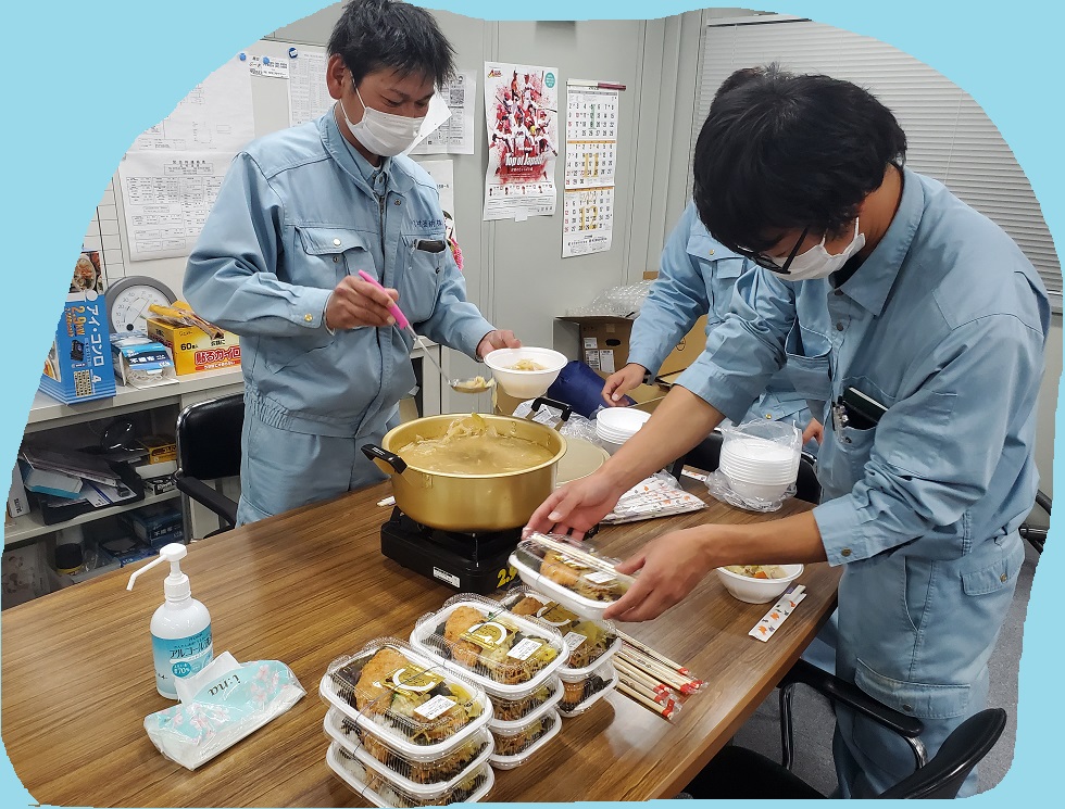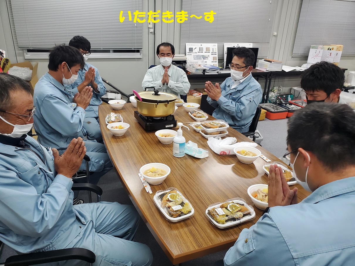 皆さん現場だったので、戻って来てから豚汁とのり弁で…