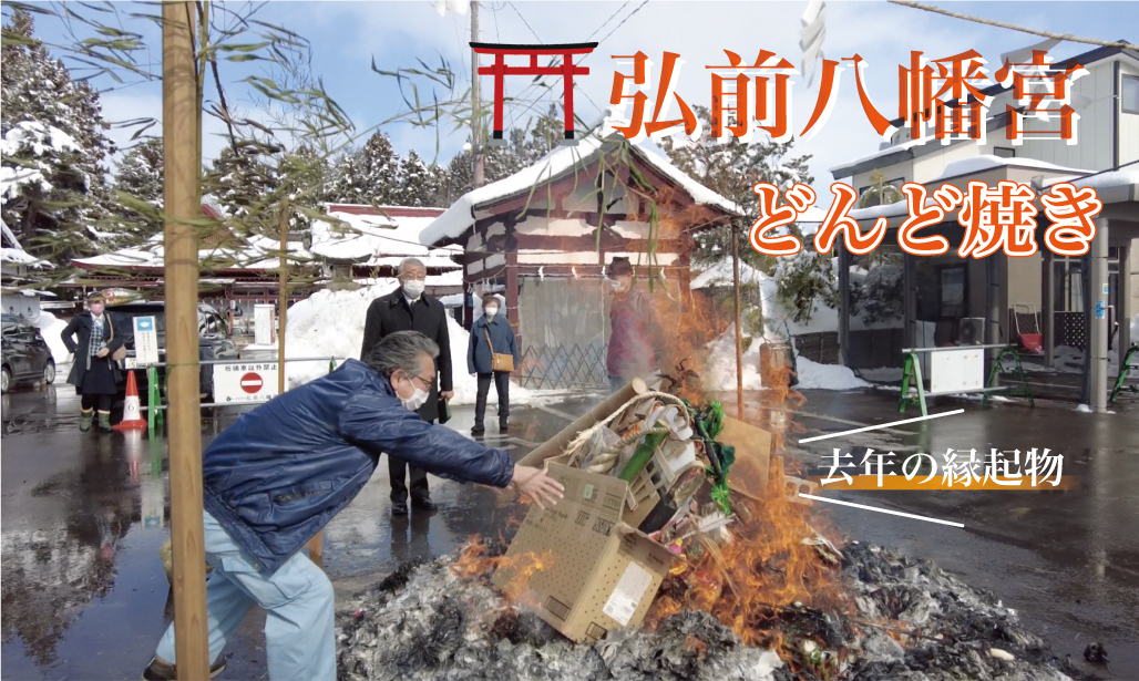弘前八幡宮さんで去年の縁起物をお焚き上げする【どんど焼き】に行ってきました🔥