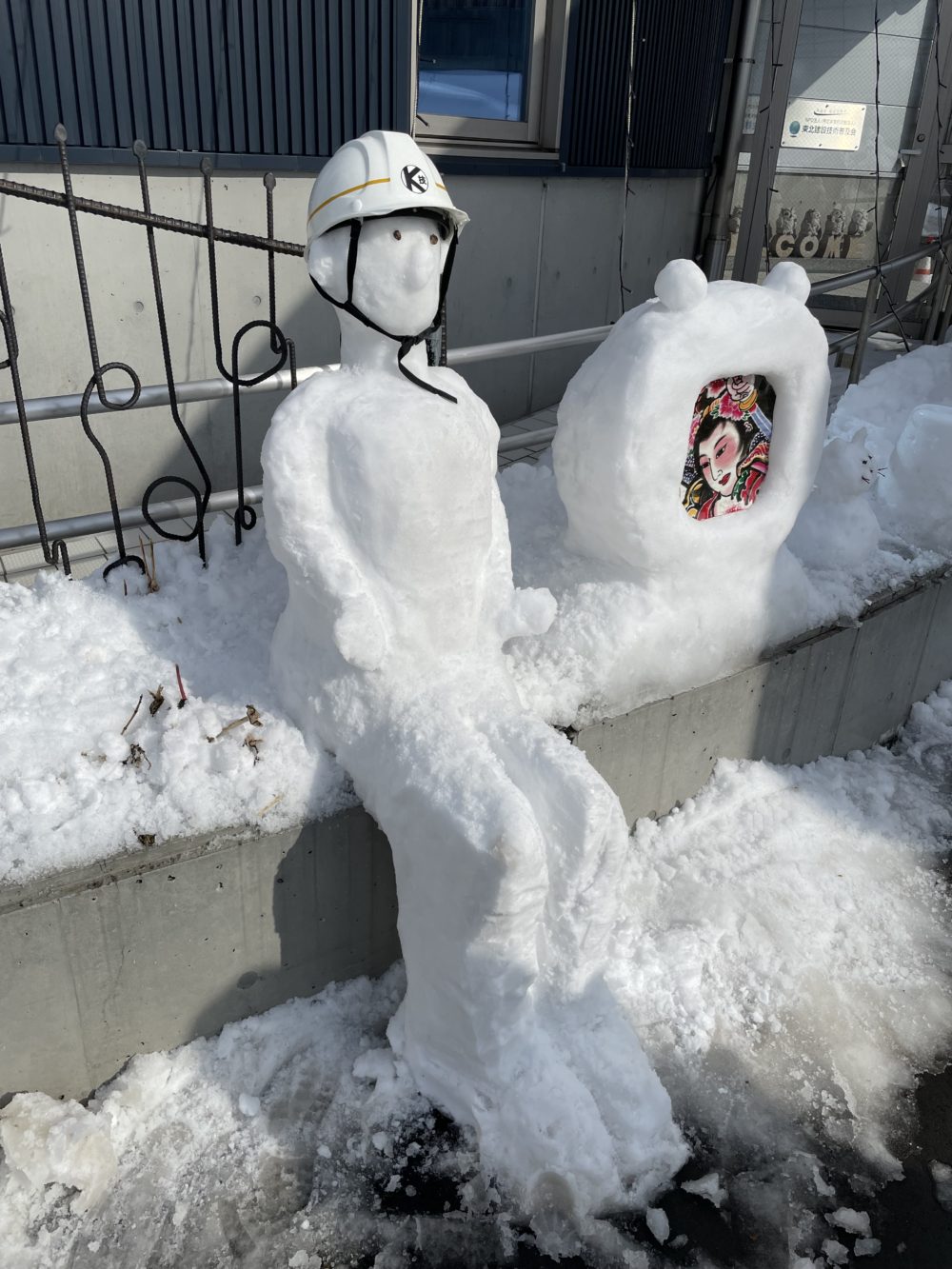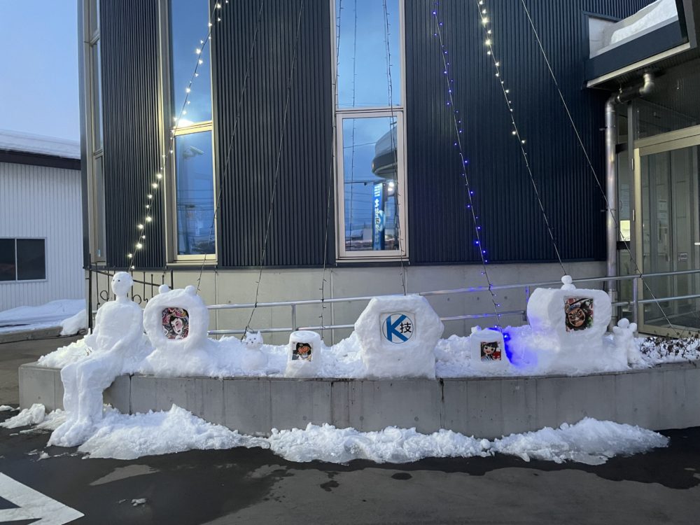 北村技術のヘルメットを被った雪像がありますね(笑)