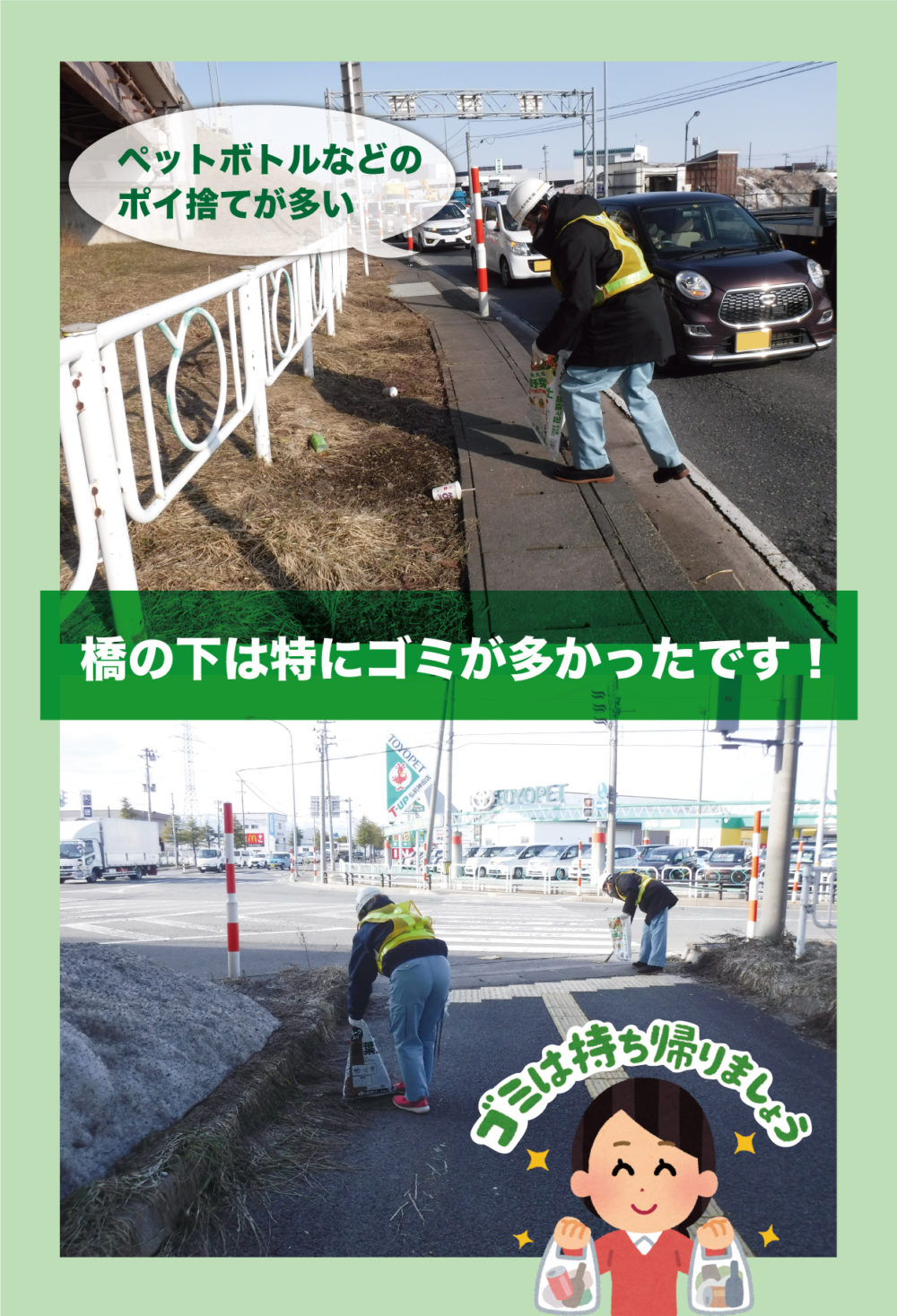 そろそろ自転車で通学する中学生や高校生が増えてくるので、ゴミに気づかずつまずき転倒するかもしれません!!