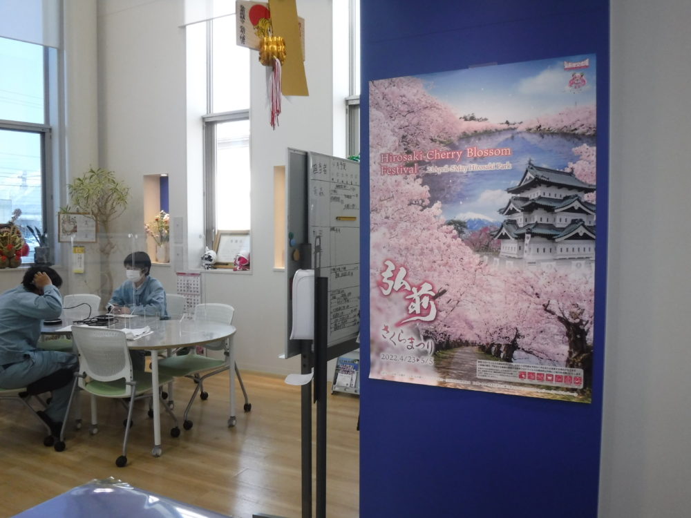 そして今年は弘前さくらまつりが大々的に行われるとのことで本社にポスターを飾りました~!!