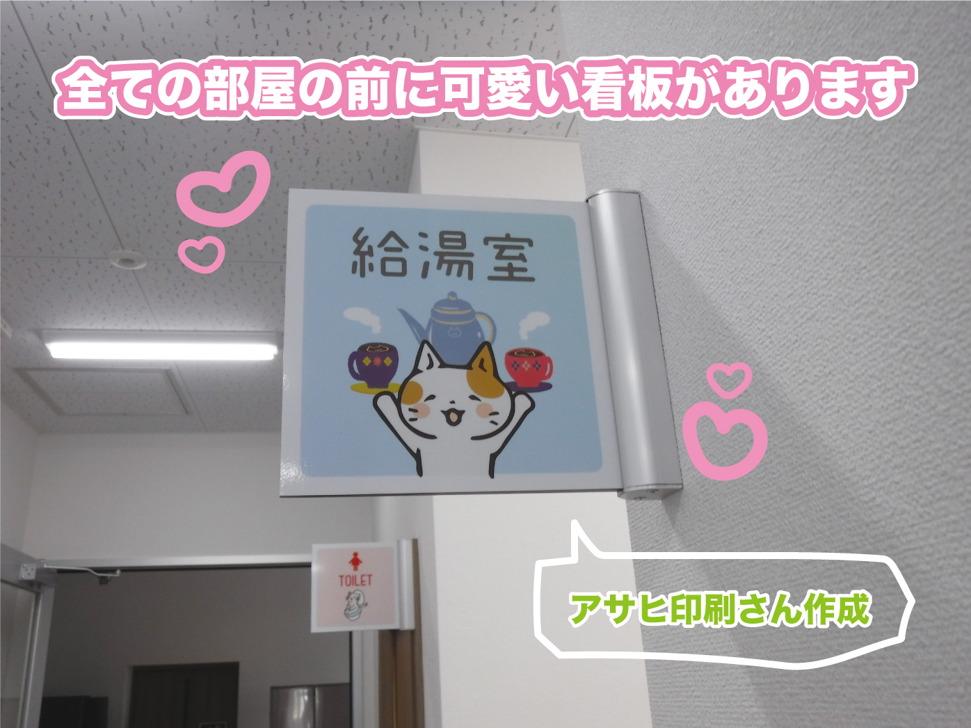 こんな感じでそれぞれの部屋の前に看板があります😸