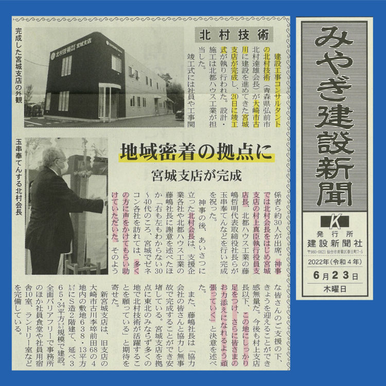 みやぎ建設新聞様に掲載していただきました!(^^)!