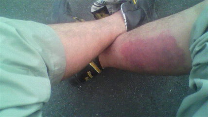 急いでその場から立ち去り、車に戻って状況確認!応急処置。