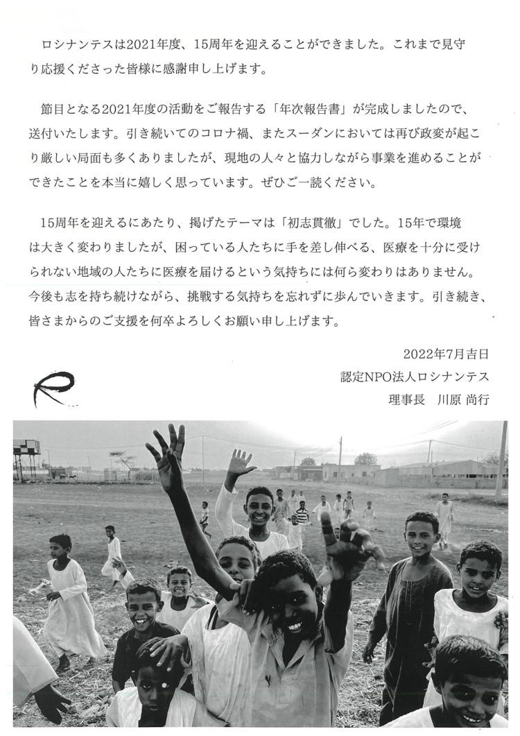 「私たち一人ひとりは痩せ馬ロシナンテのように無力かもしれない。しかしロシナンテが集まりロシナンテスになれば、きっと世界を笑顔にできるはず」