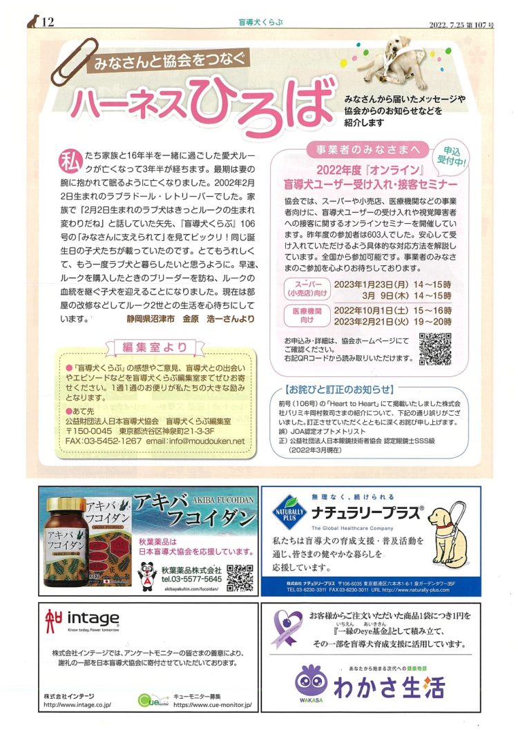 なかなか盲導犬の数が足りない状況です🐶