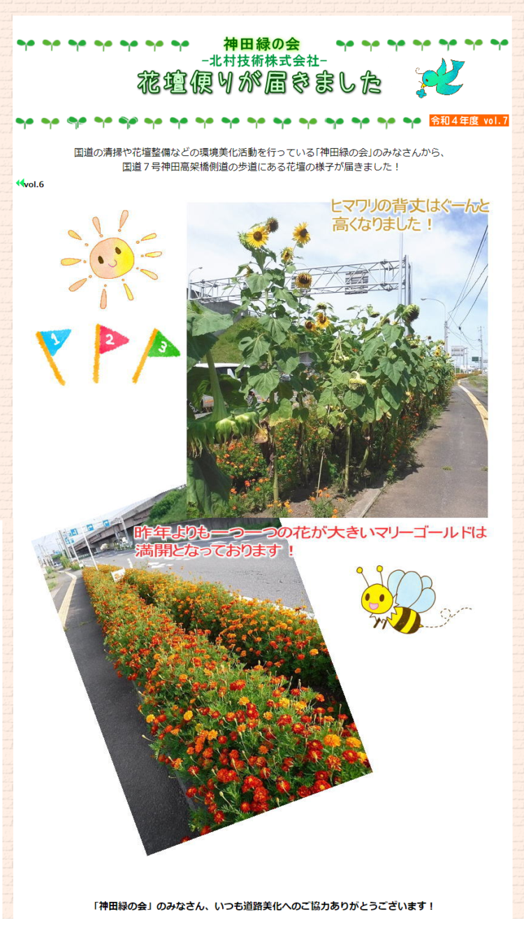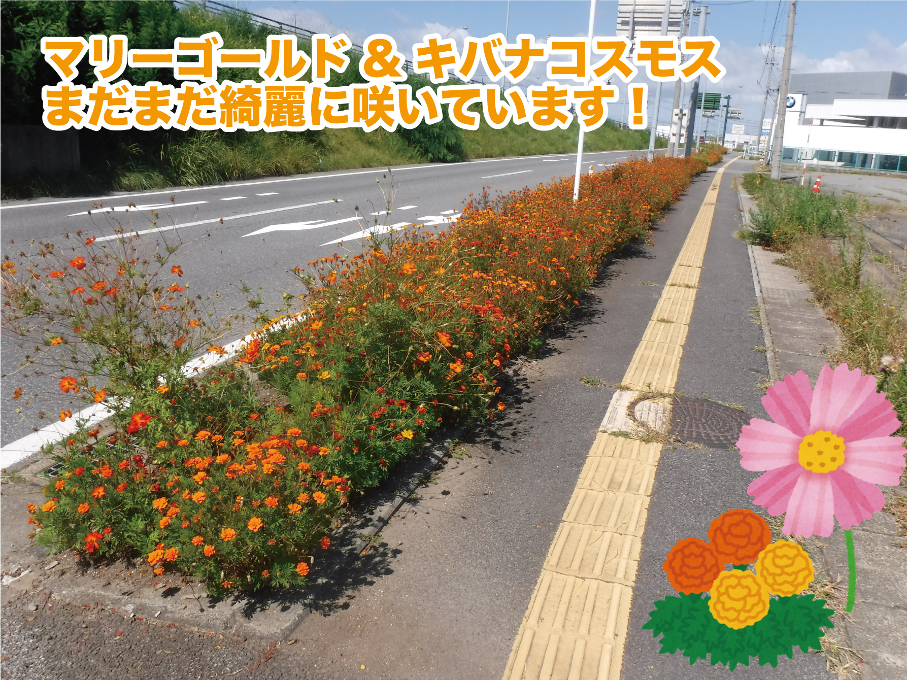 国道7号線弘前神田バイパス沿いの国交省さんからお借りしている花壇はまだまだ綺麗に咲いています🌼