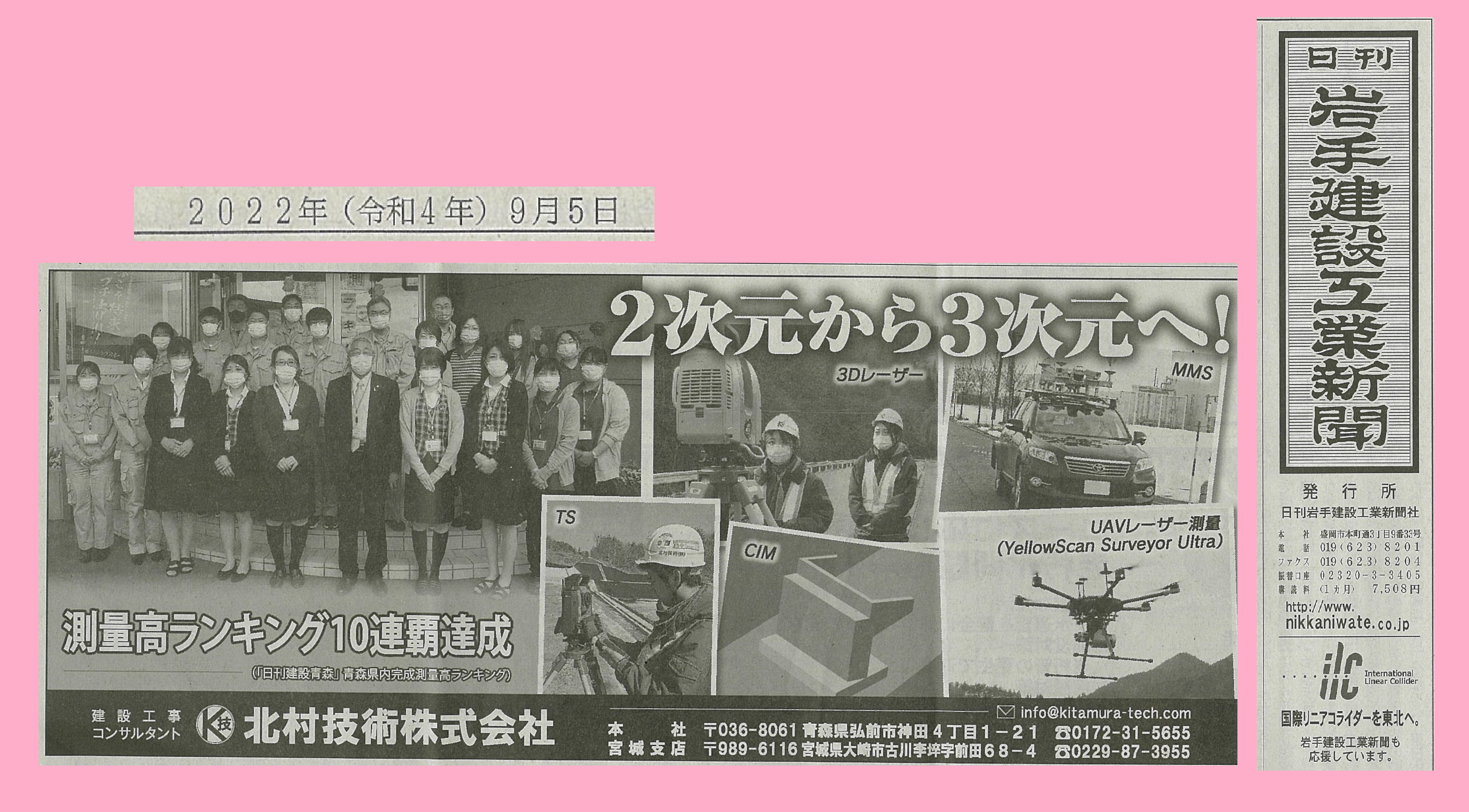 日刊岩手建設工業新聞様に掲載していただきました!