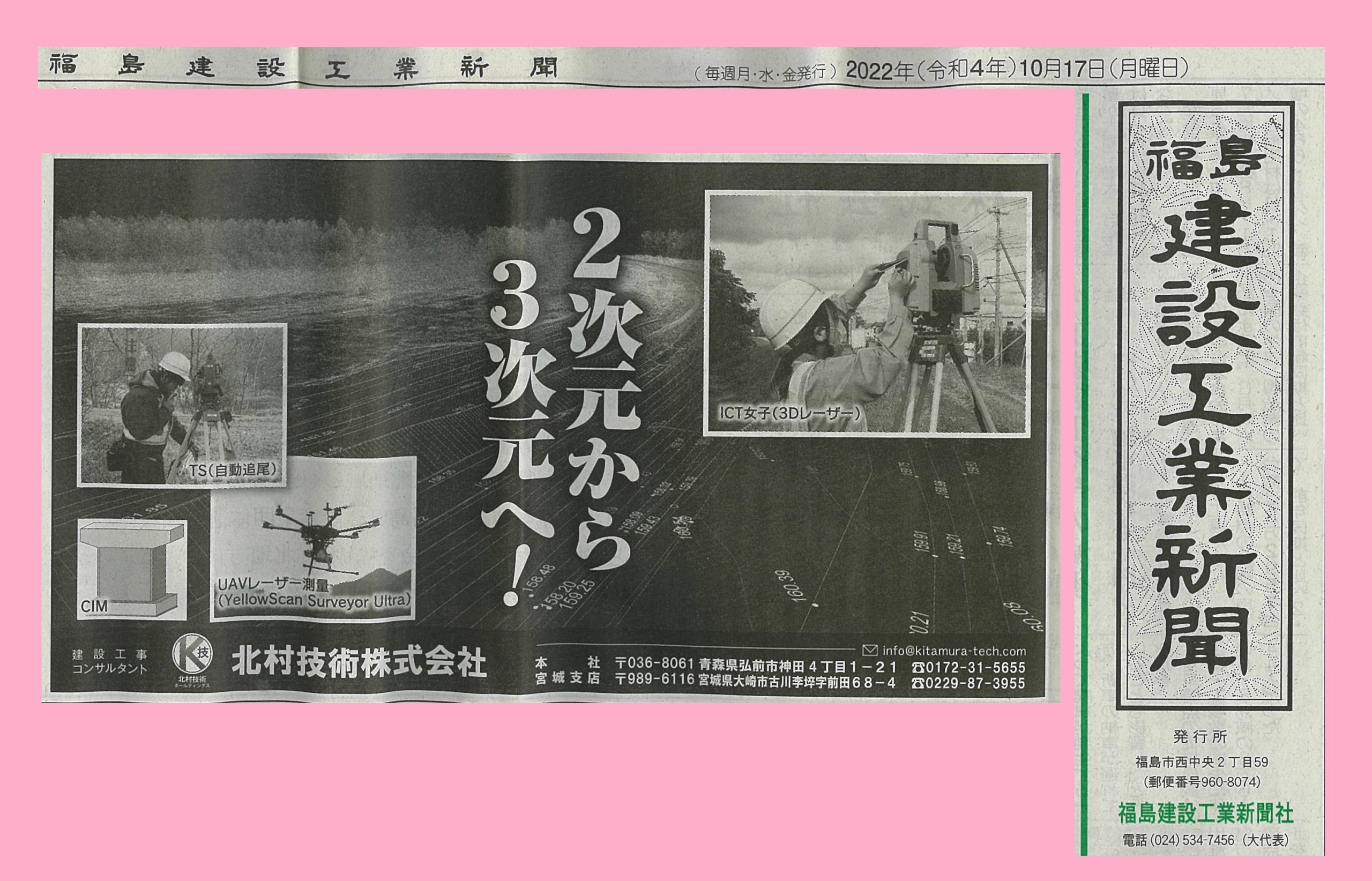 福島建設工業新聞さんへ広告を掲載いただきました。