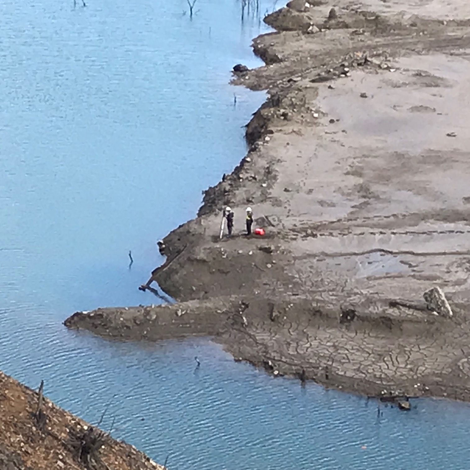 今回、冠水期のダム貯水池の水際まで、初めて歩いて近づいてきました