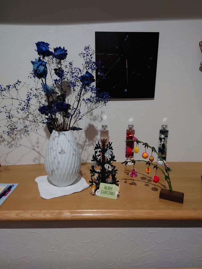 続いて宮城県で最近テレビではやりの青ダルマです。スターチス?のドライフラワーはお掃除の葛西さん作
