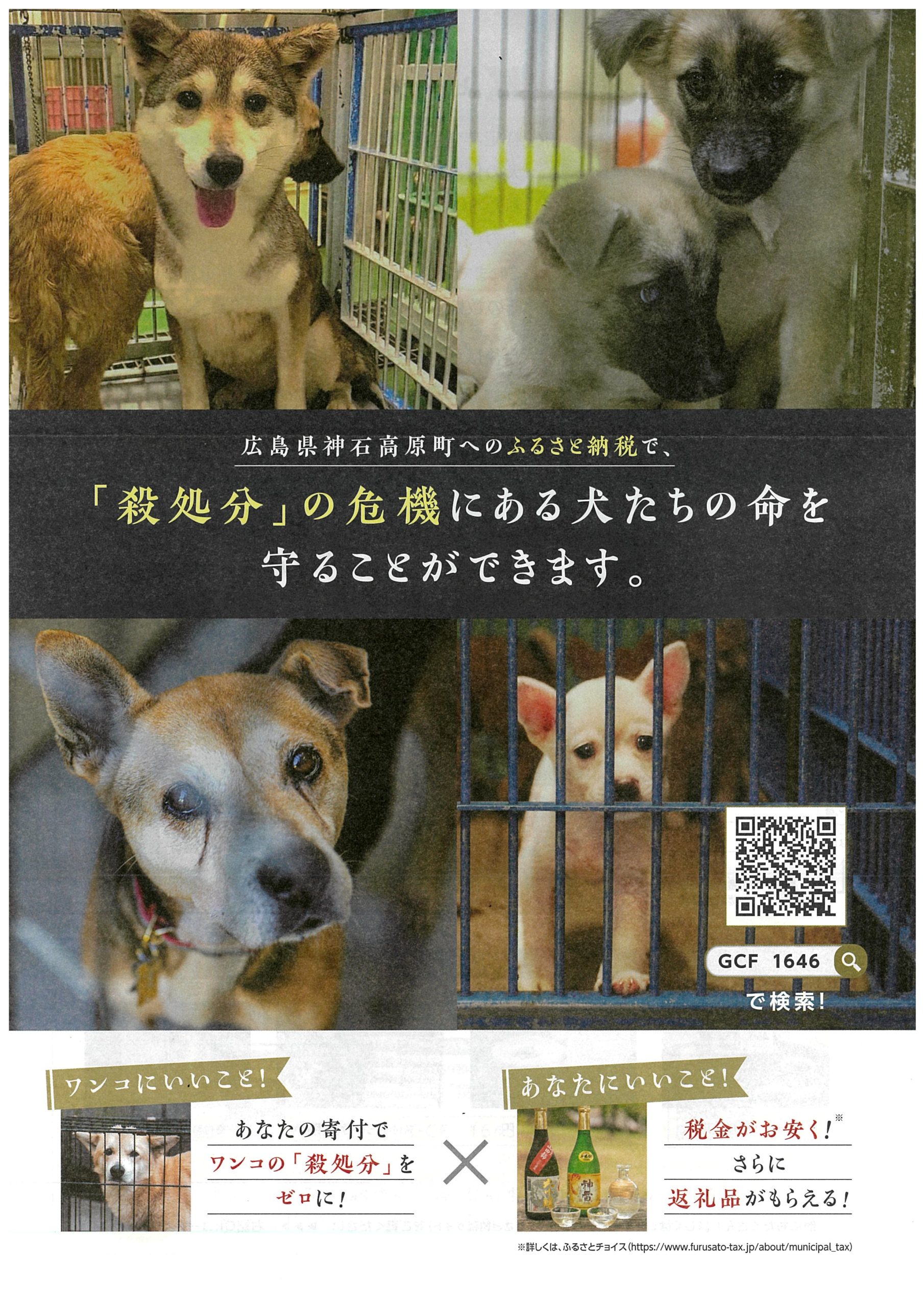 ふるさと納税による寄付は、殺処分対象犬の保護・譲渡活動、犬舎の建築・維持費、犬のフード・医療費などの他、「殺処分ゼロ」を全国へ広げる活動等に役立てられます。