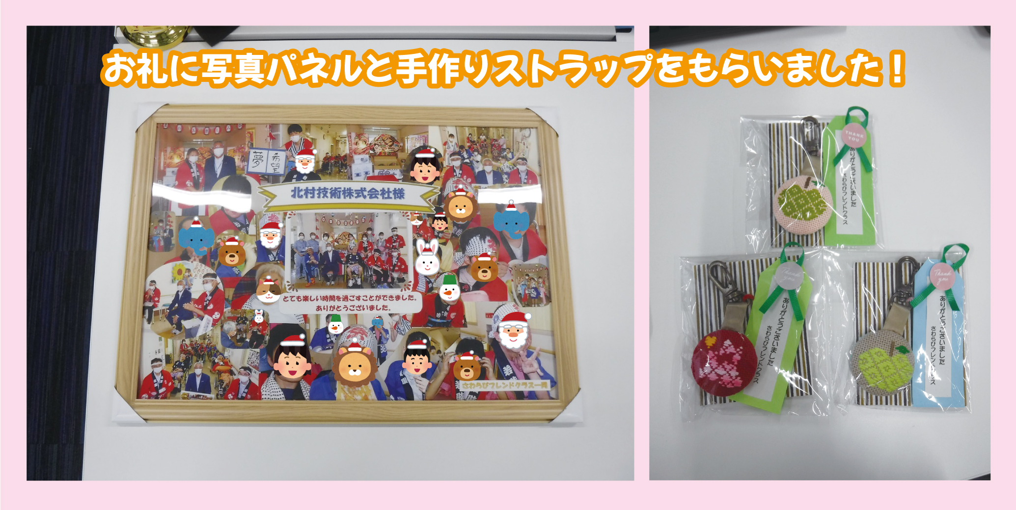 お礼に写真パネルと手作りストラップをいただきました👏