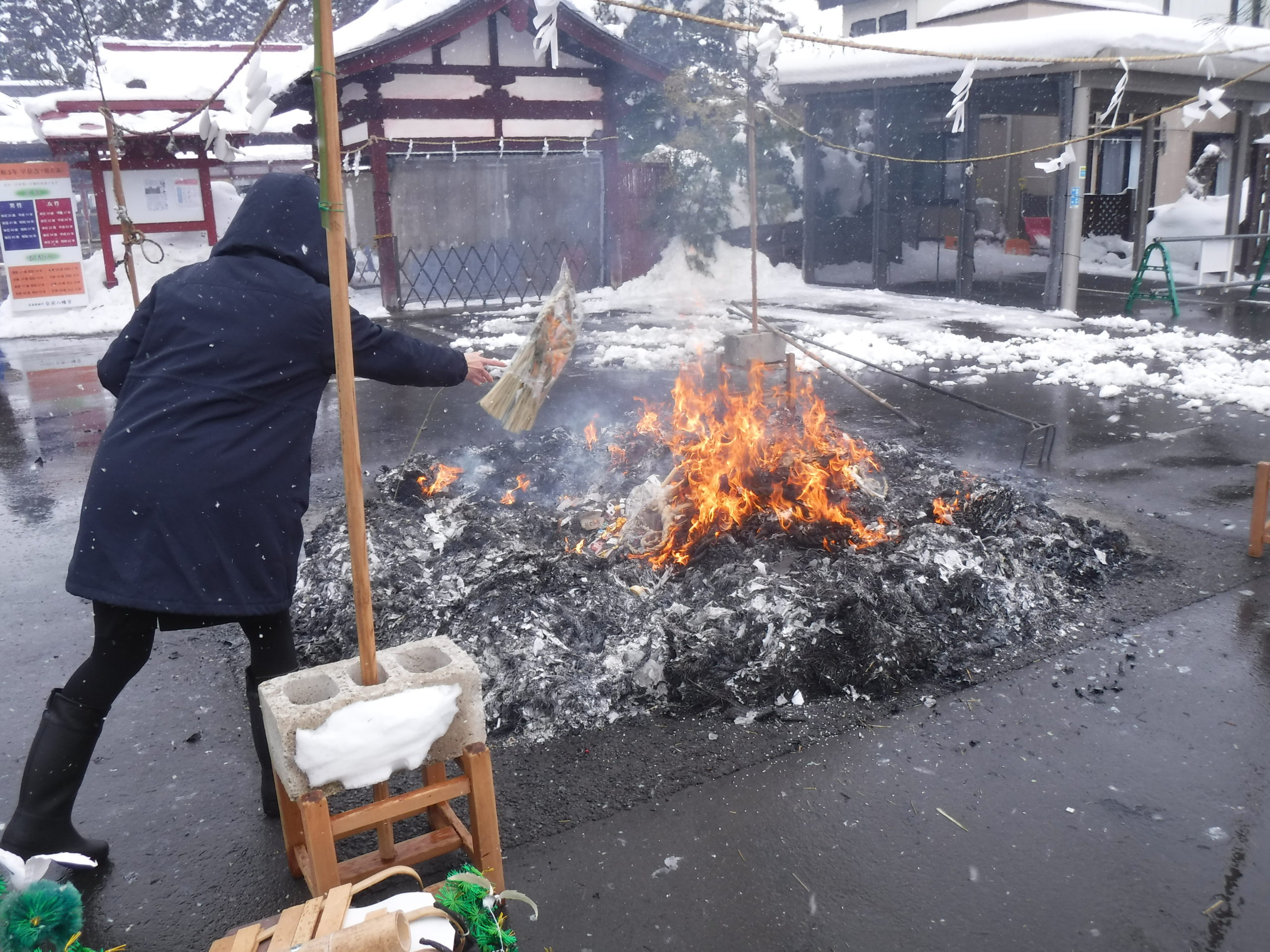 雪が降っていましたが勢いよく燃えていたので、火の周りは熱く全然寒く無かったです🔥