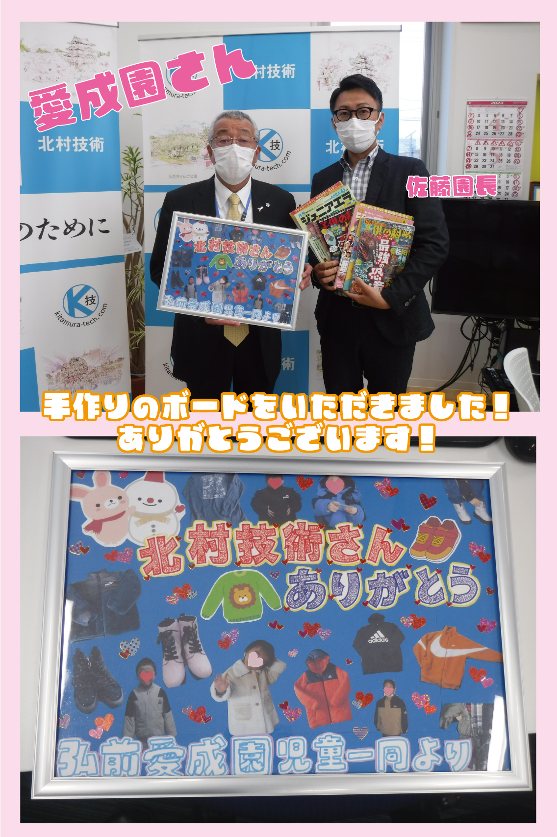 児童養護施設弘前愛成園の園長さんが手作りのボードを持ってきてくださいました(*^▽^*)