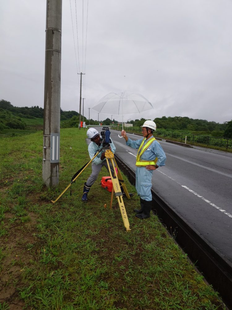 基準点測量も日数が足りないため雨でも実施?(-_-;)