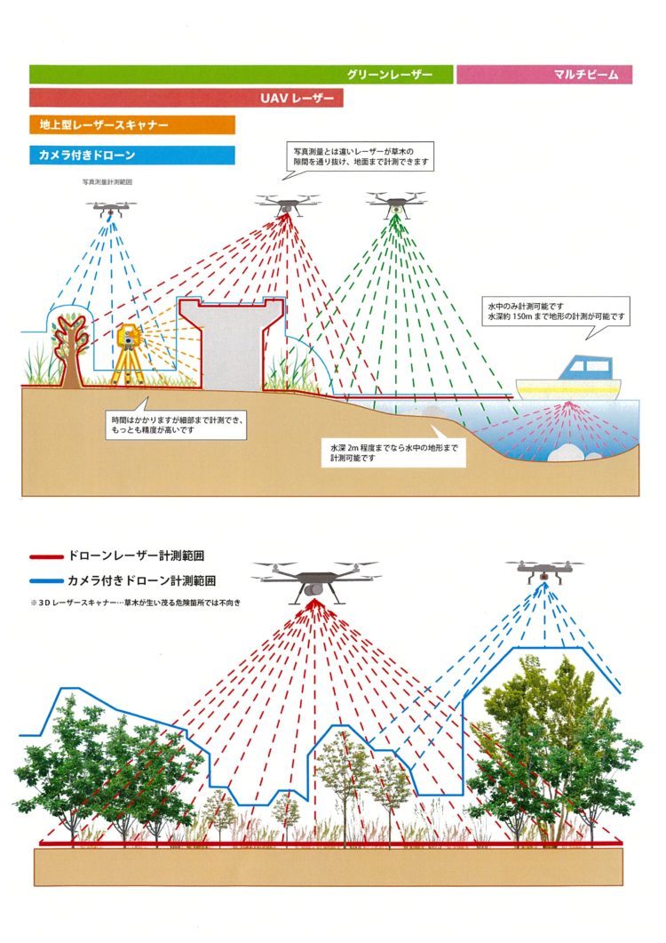 カメラ付きドローンと弊社所有の3Dレーザースキャナーとレーザードローン併用での違いは歴然さらにはグリーンレーザーも使用するとこんなに便利