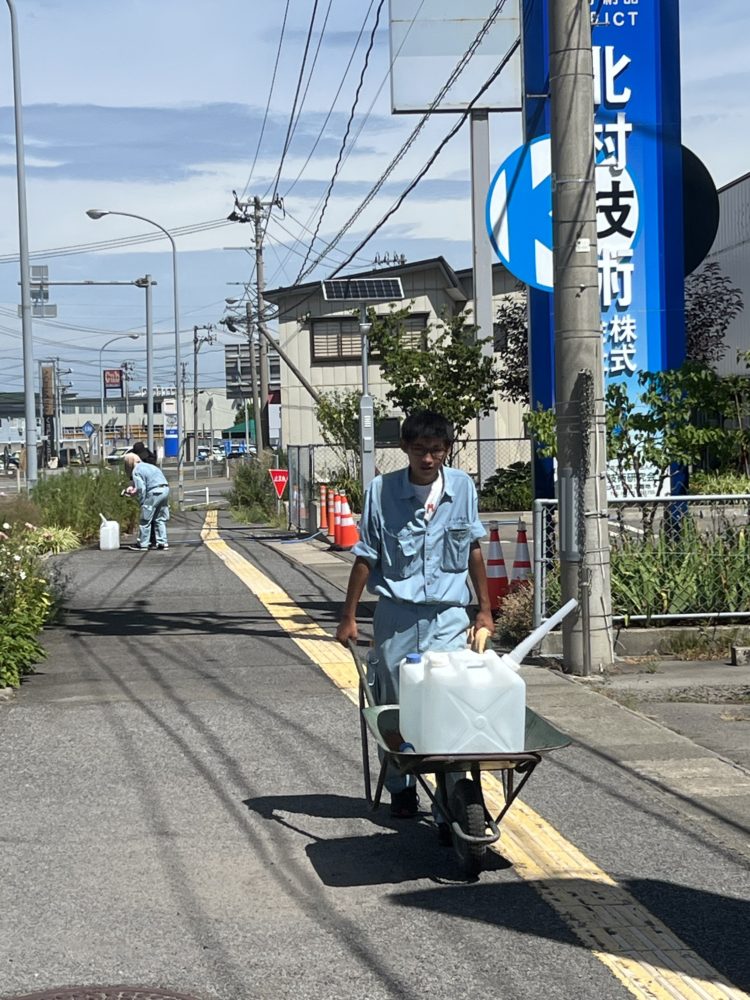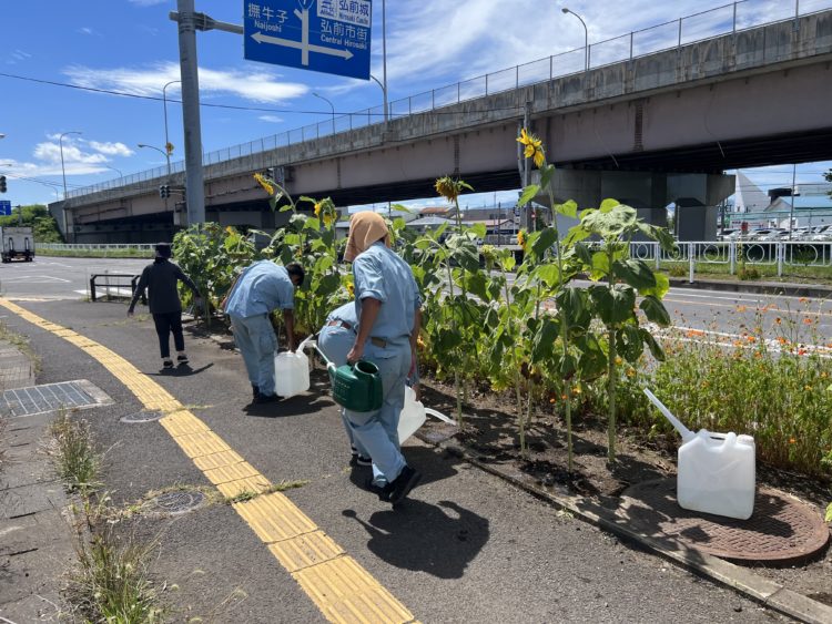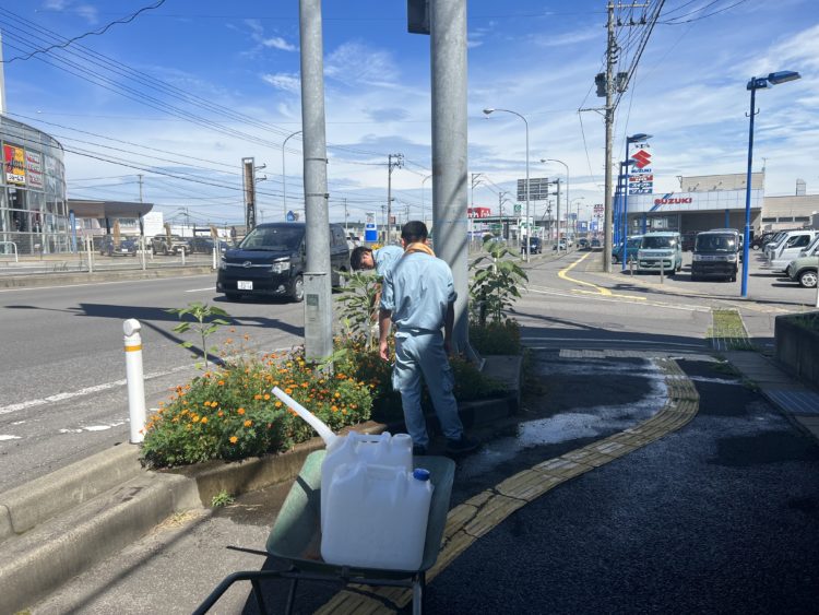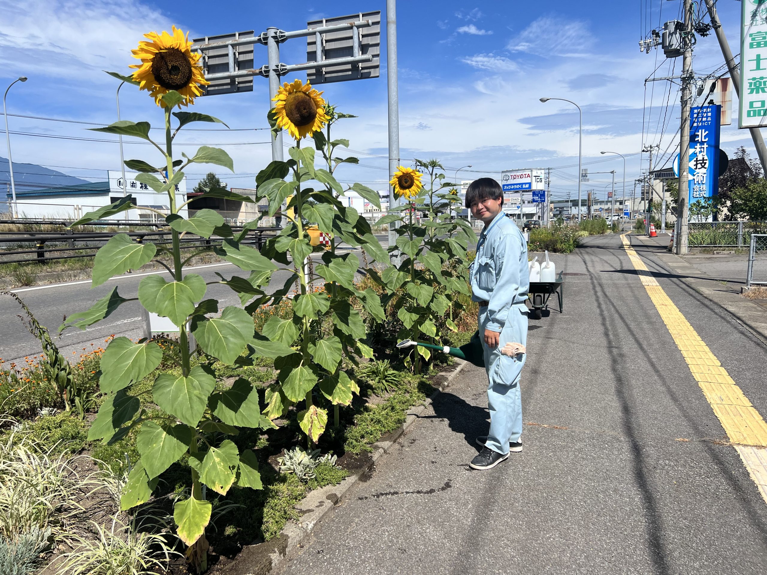 今年も猛暑の中、神田みどりの会では二年目三年目(竹村・工藤・相馬・三上)かな?若手社員4人で水やり、国道を走るドライバーさんキレイなひまわり・マリーゴールド・キバナコスモス見てください、入社2年目の相馬でした<m(__)m>