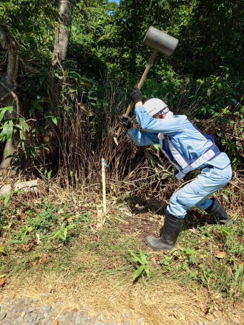 踏査選点(3級・4級基準点)は私が、GNSSは児玉・平面図村上・工藤・奈良、基準点観測は田口チーム伐採含む、水準測量は工藤・三崎・児玉・奈良、、、一日で1.8㎞を一気に終了、
