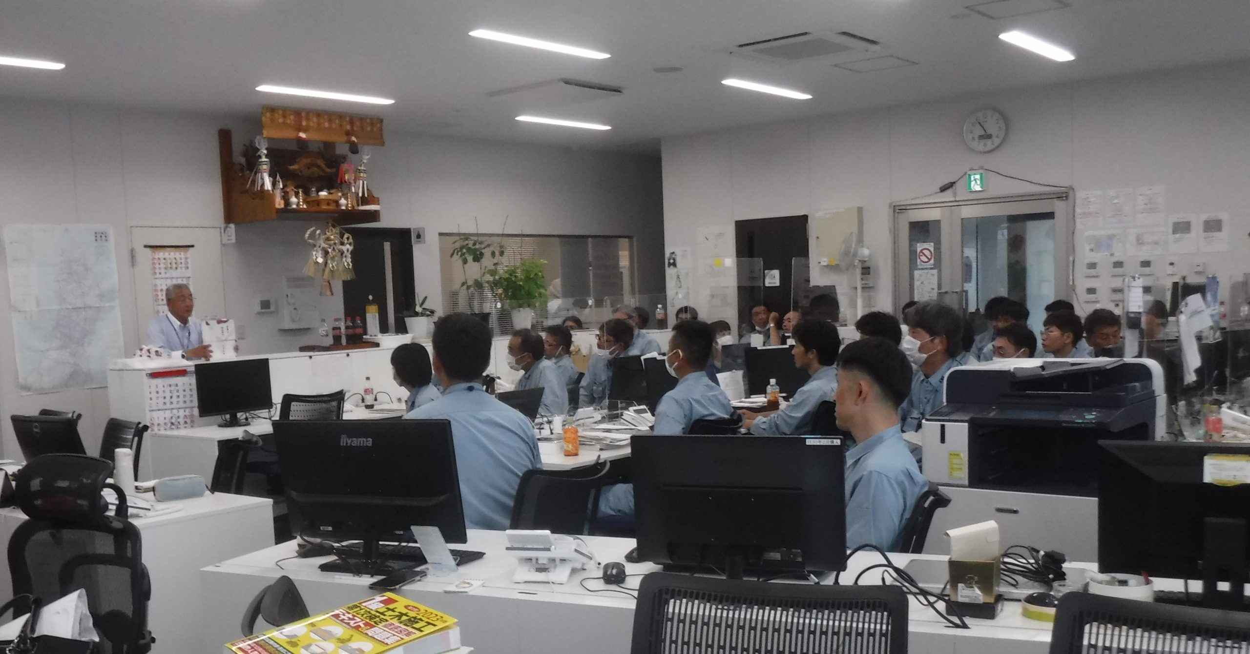 全体会議では、社長より今後の北村技術のあり方について、挨拶・礼儀が大切な事、先月行った、外国人の測量講習会でのスリランカ人の挨拶のすばらしさについても触れ、人と接していくうえでの人間力や会話力の大切さについてのお話がありました。