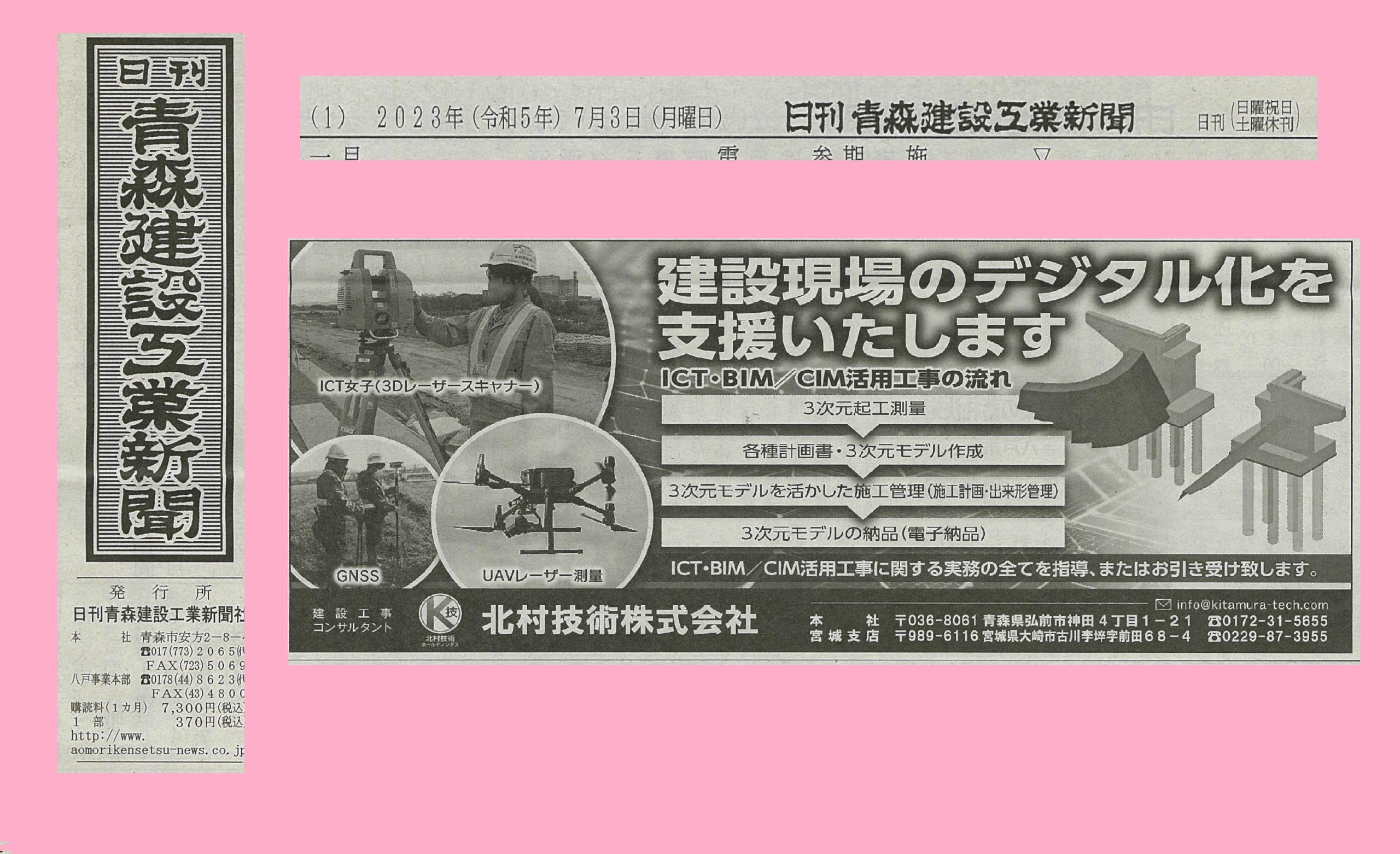 7月3日の青森建設工業新聞さんに広告を掲載いただきましたので紹介します。