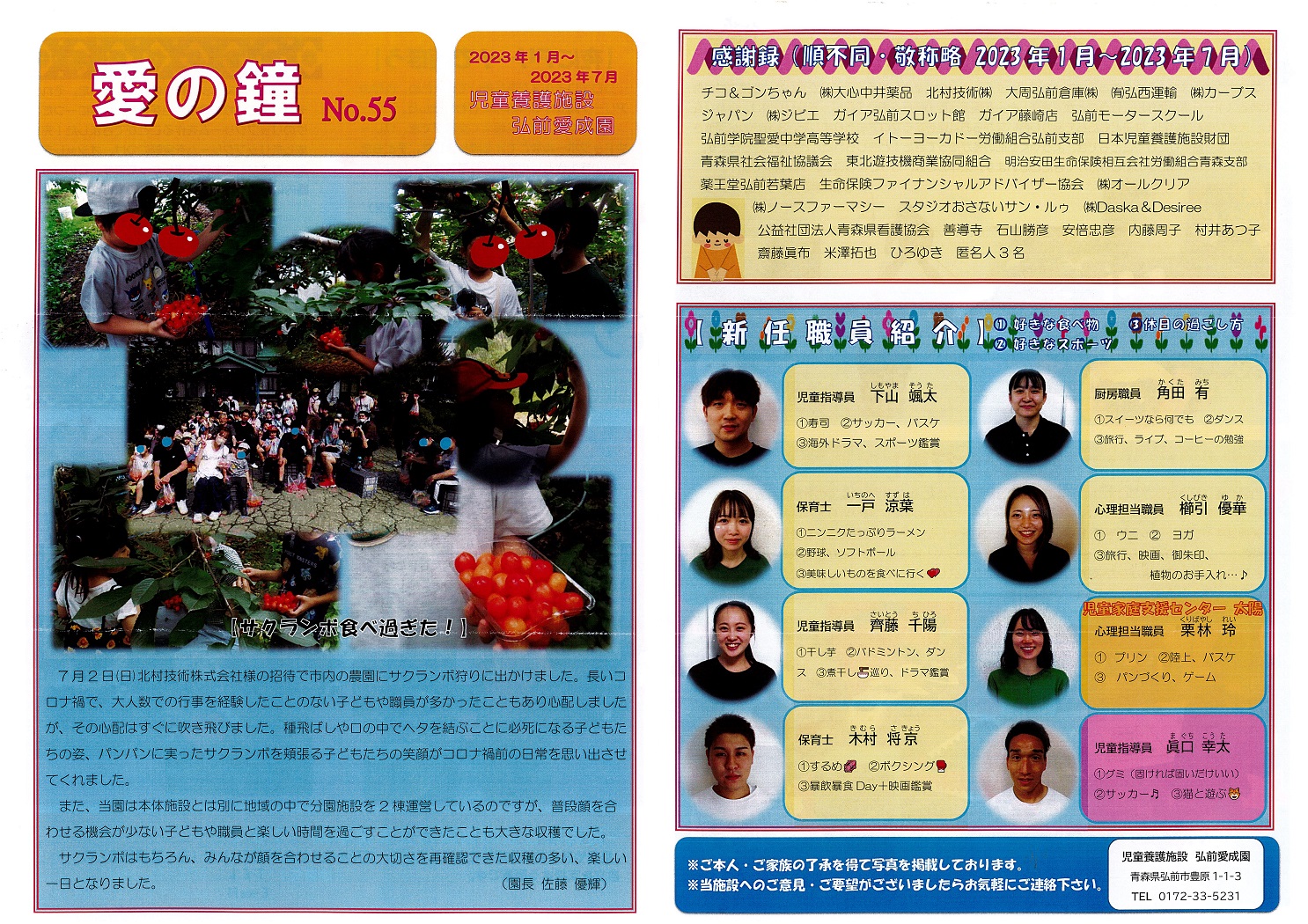 本日は児童養護施設 愛成園さんよりお便り『愛の鐘』が届きましたのでご紹介します。