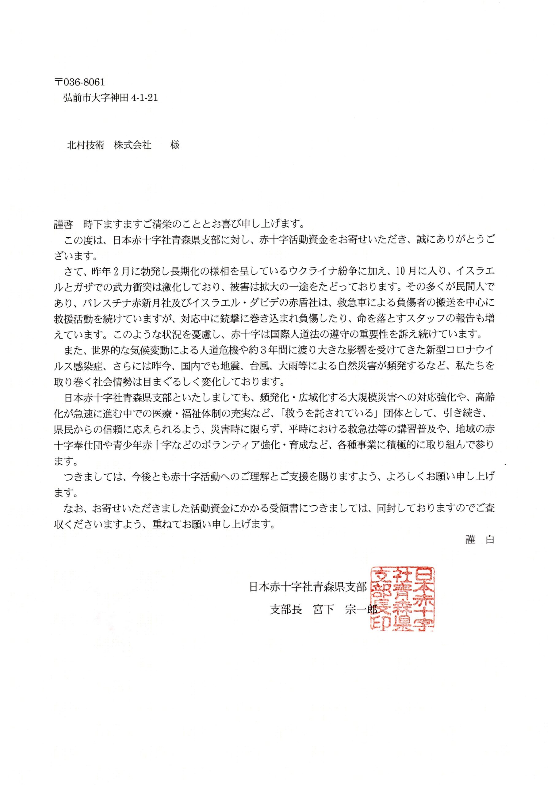 当社では日本赤十字社さんに定期的な寄付を行っております。
